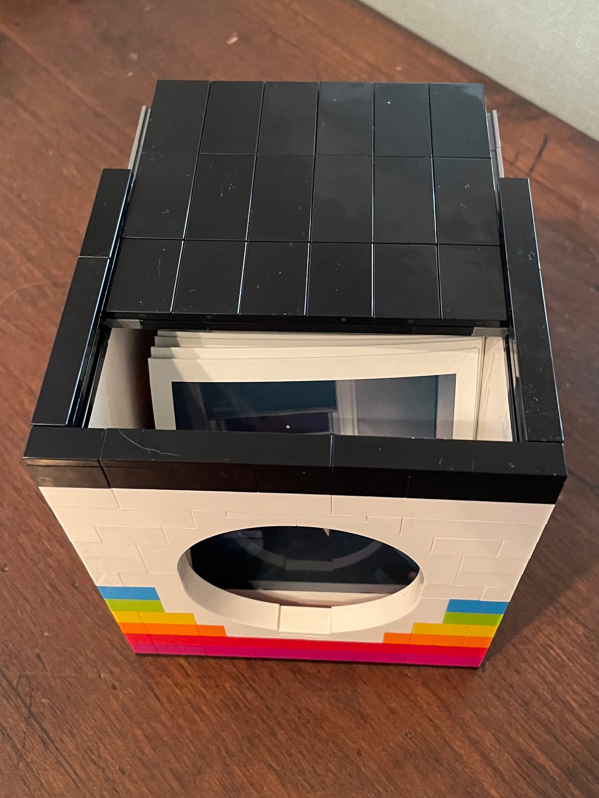 Store your memories in style with our Polaroid Storage Box! Made of 168 bricks, this quirky box measures 3.8" W x 4.4" L x 4.8" H and can hold up to 60 polaroids. It's a fun and unique way to keep your photos organized. (Warning: may cause extreme nostalgia.)